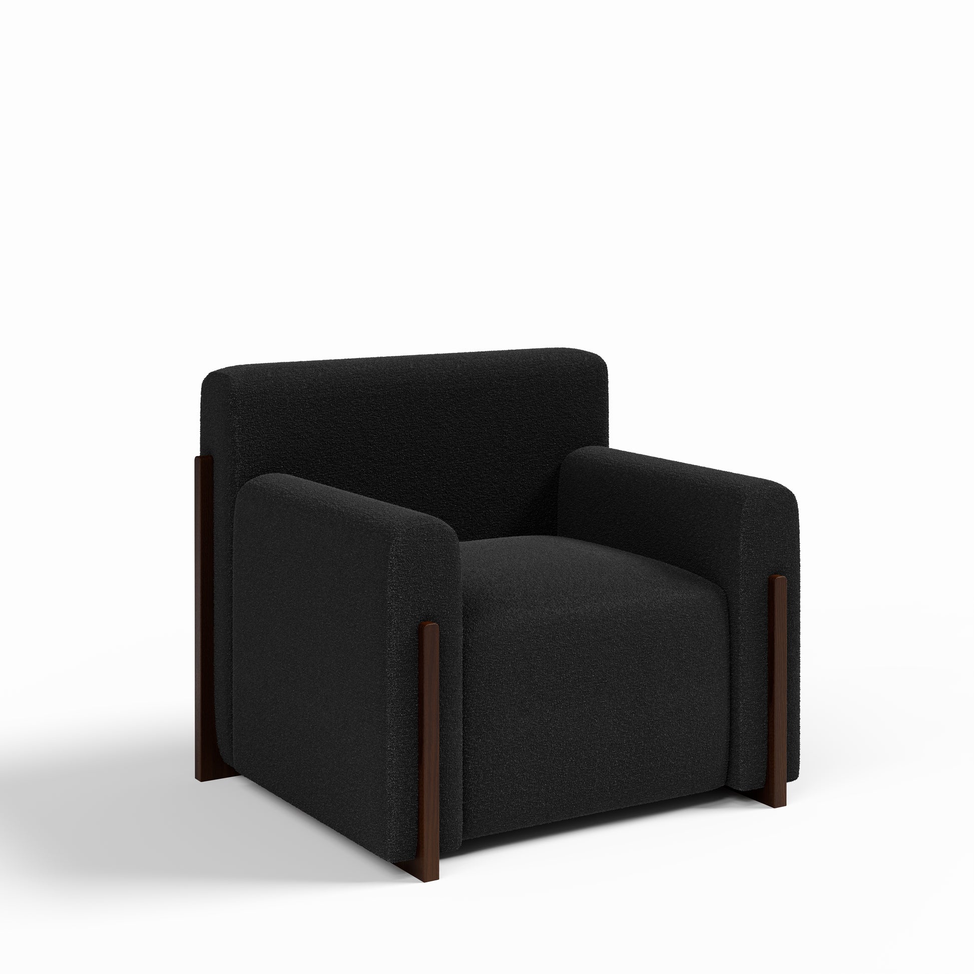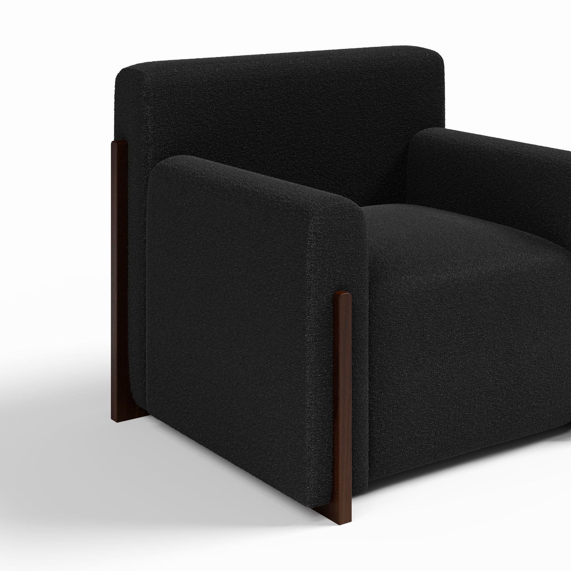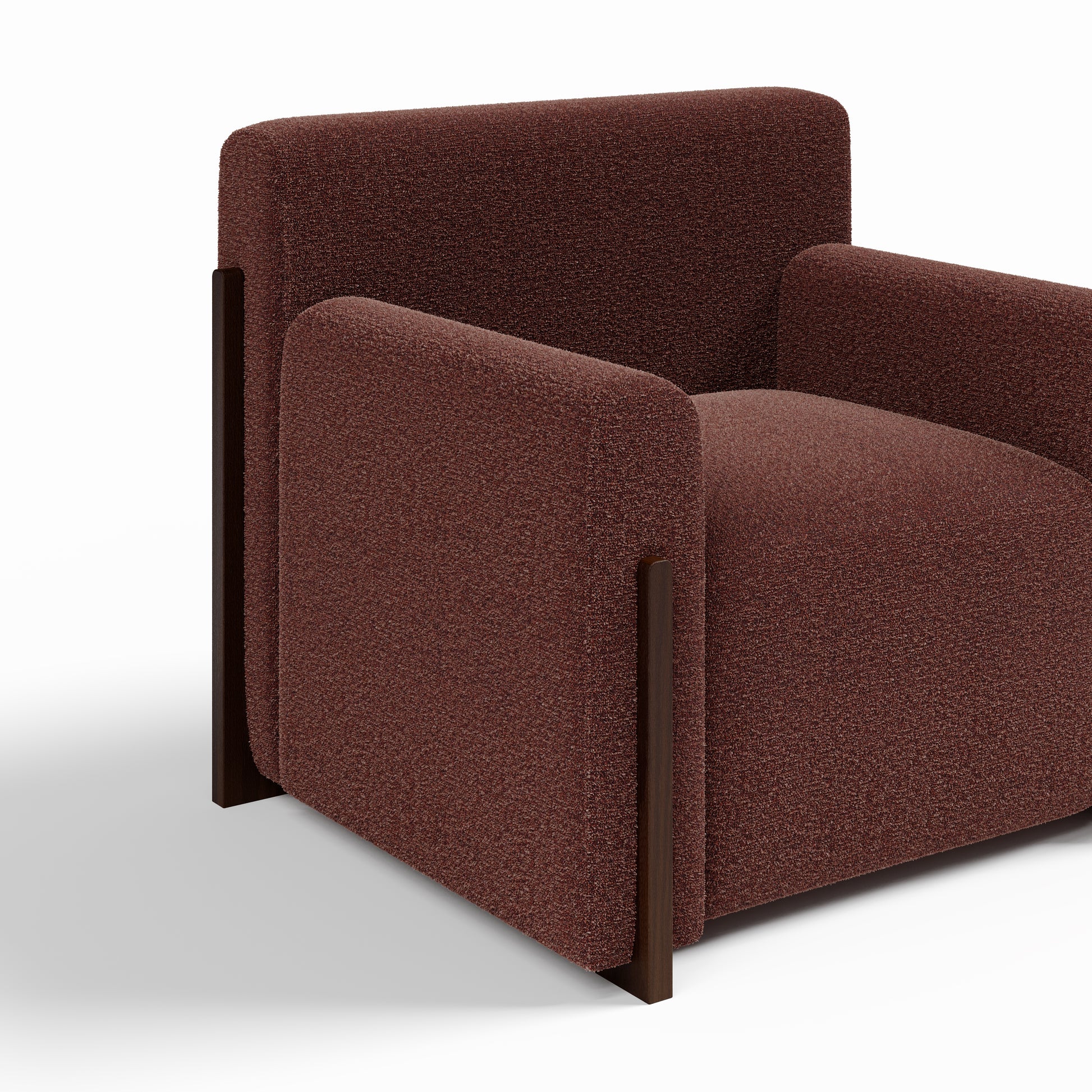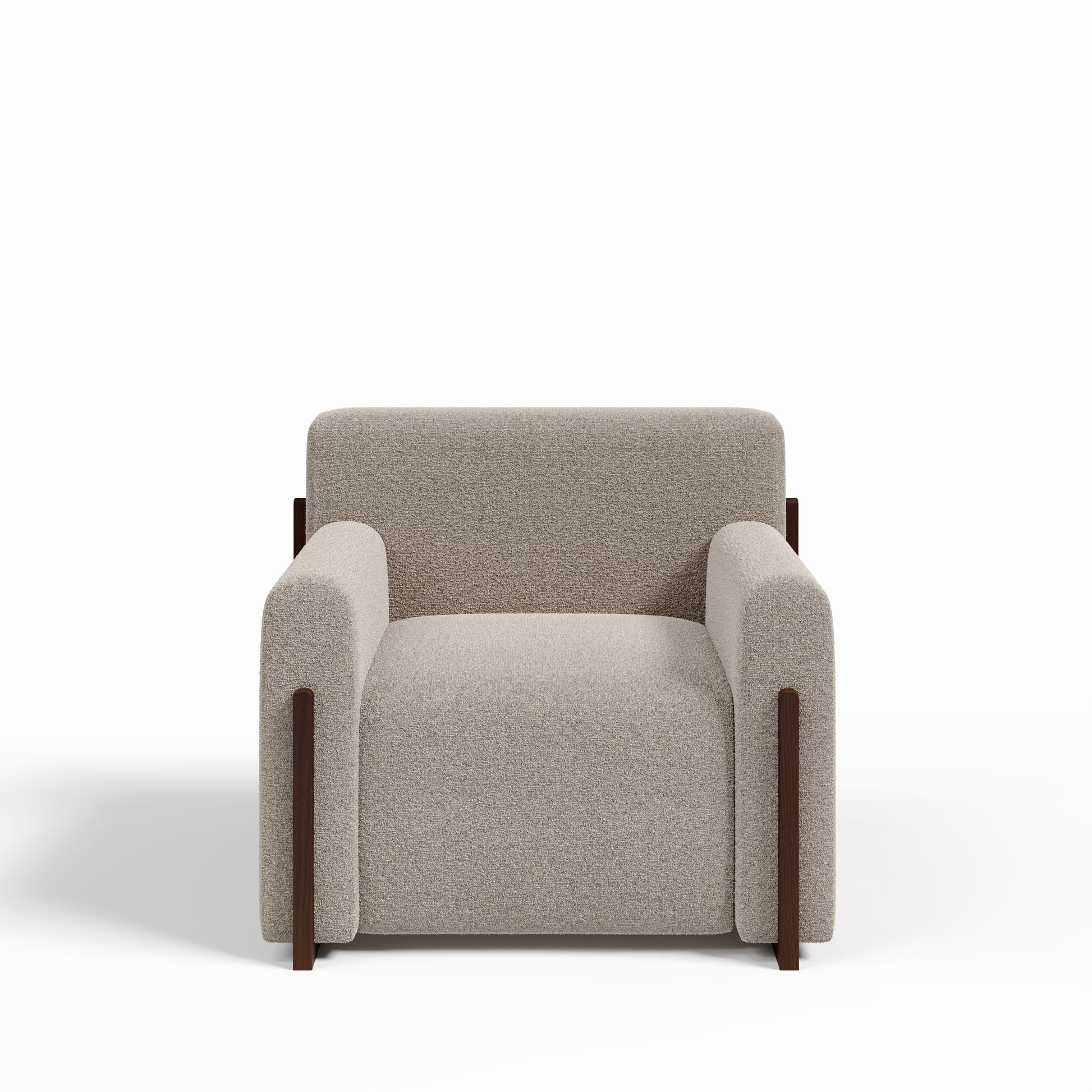 The Bombay Arm Chair is sculpted with bold planes and generous proportions. Its deep seat and enveloping arms create a sense of refuge, while vertical wooden accents introduce rhythm and grounding. With a form that feels architectural yet soft, it anchors a room with quiet confidence.