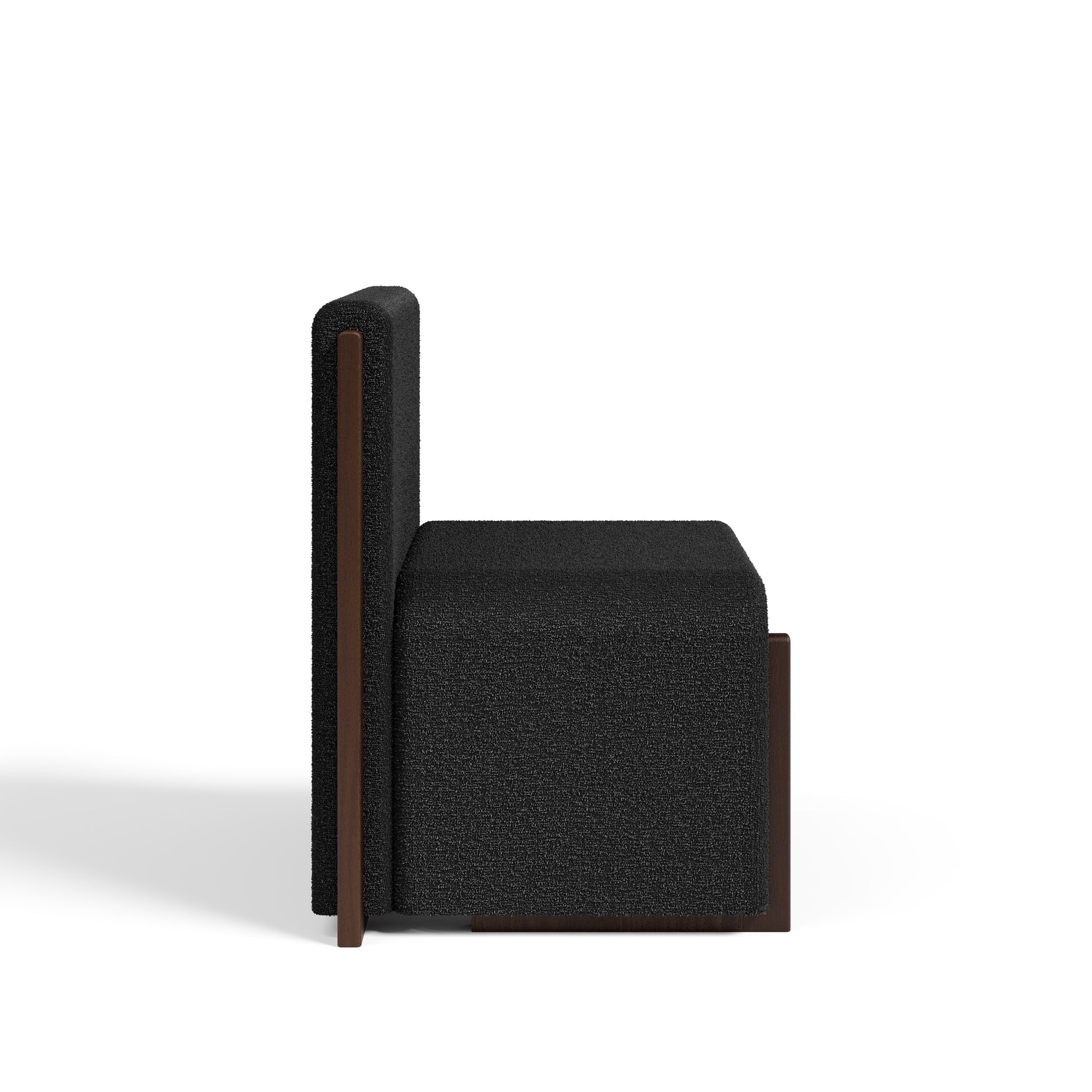 The Bombay Dining Chair is defined by its open, armless frame and precise geometry. A poised seat rests lightly on tapered legs, creating a profile that is both fluid and grounded. With its clarity of line and considered scale, it brings quiet structure to the dining setting.