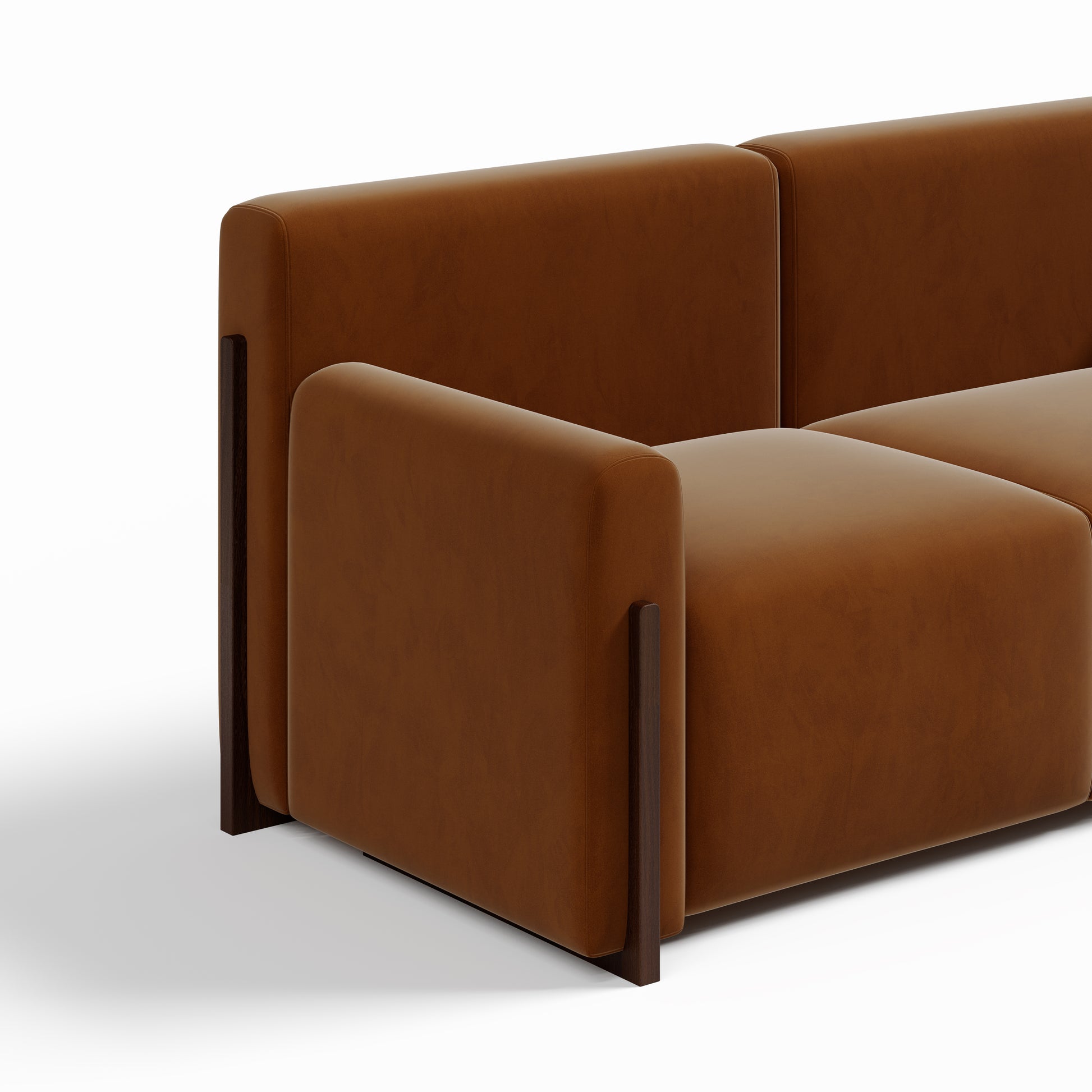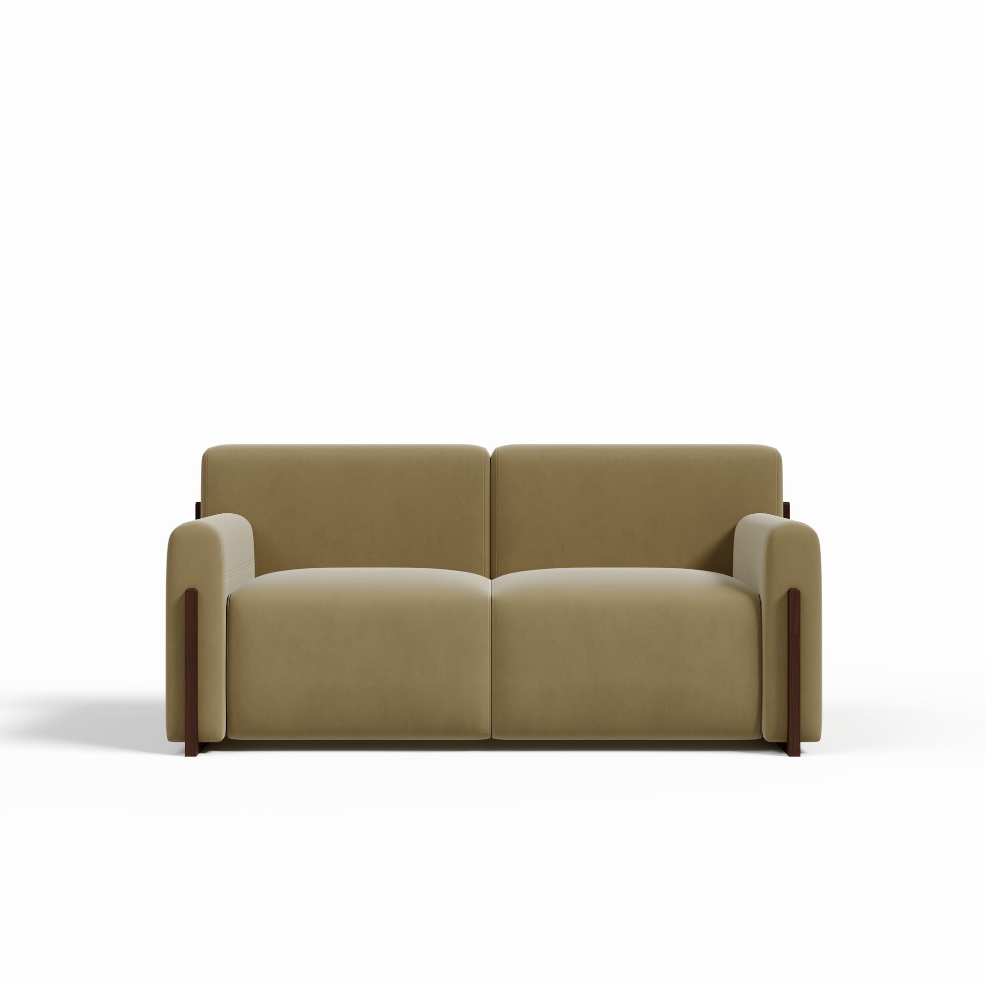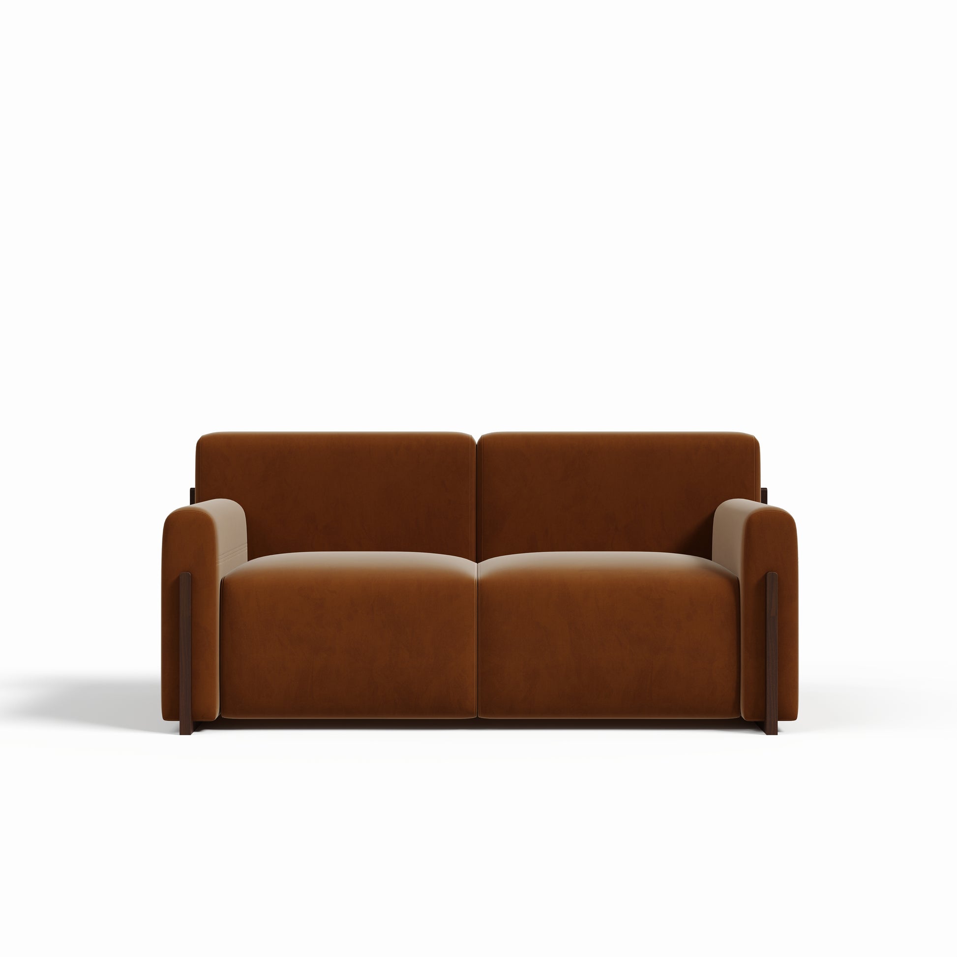 The Bombay 2-Seater Sofa is defined by its sculptural form and deliberate restraint. Strong volumes and low, even proportions give it an architectural presence, while inset wooden detailing lends a subtle vertical rhythm. Compact yet commanding, it brings structure and poise to intimate living spaces.