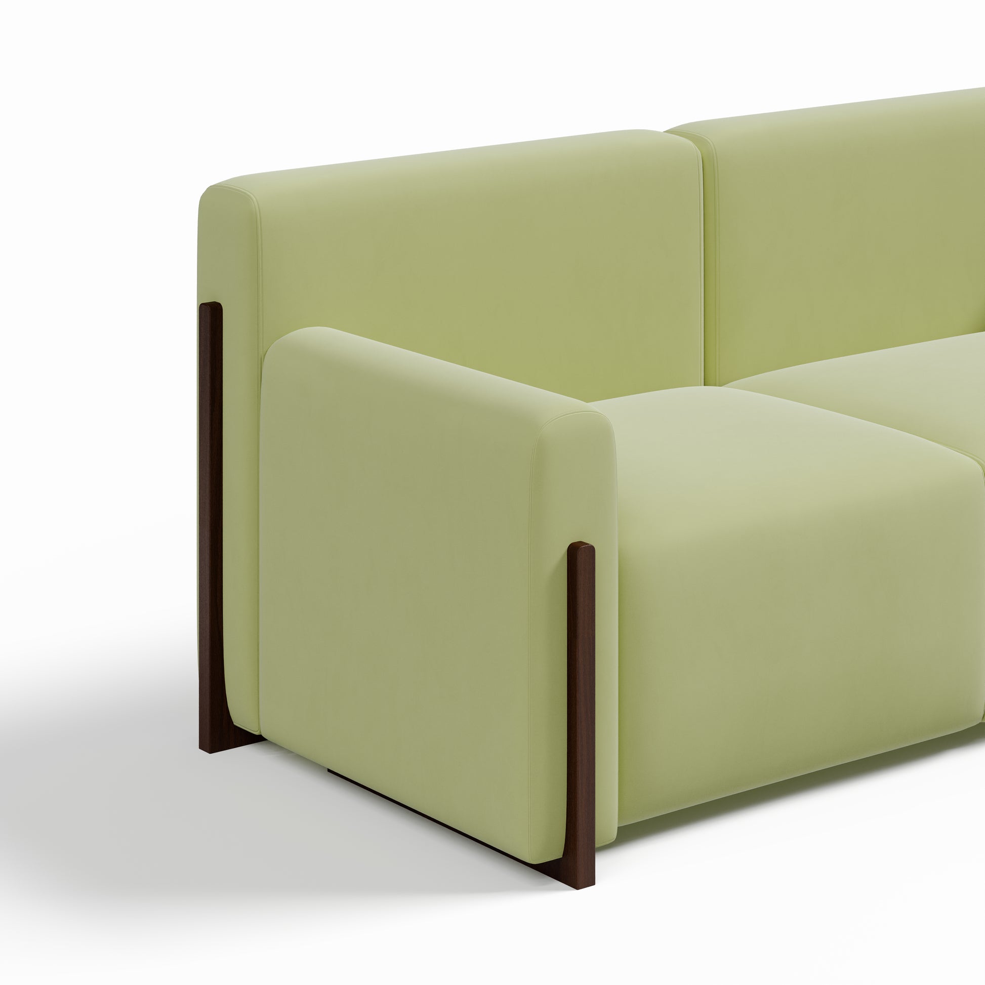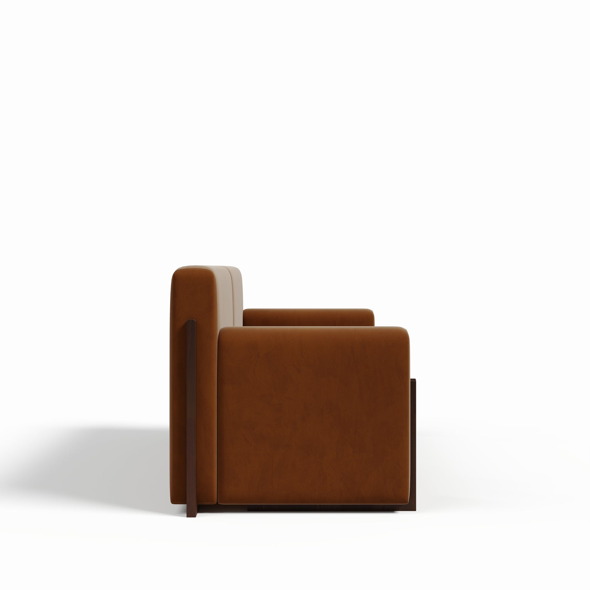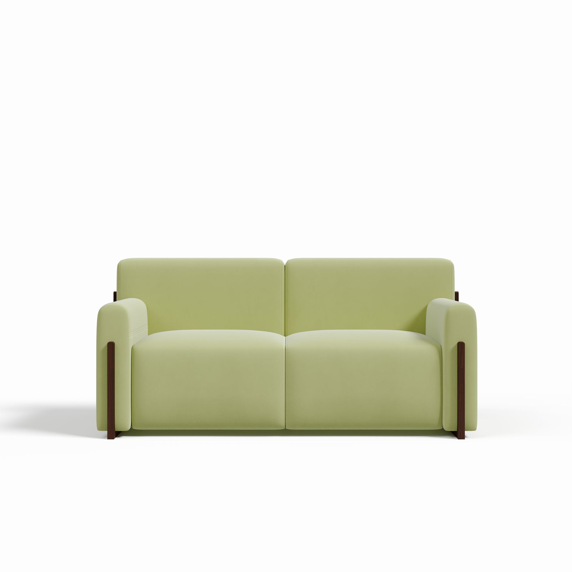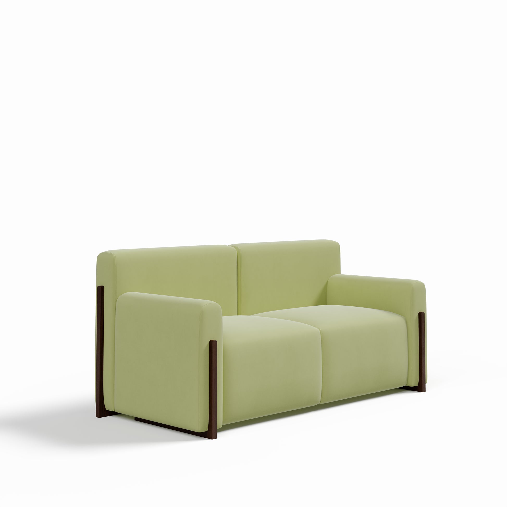 The Bombay 2-Seater Sofa is defined by its sculptural form and deliberate restraint. Strong volumes and low, even proportions give it an architectural presence, while inset wooden detailing lends a subtle vertical rhythm. Compact yet commanding, it brings structure and poise to intimate living spaces.